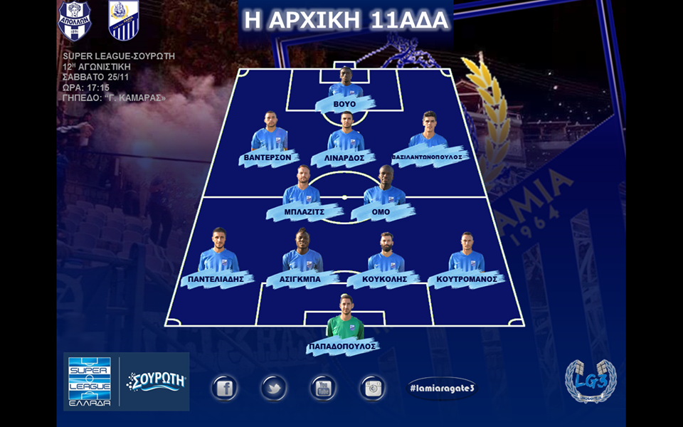 Μία Λαμία με αρκετές αλλαγές τη σύνθεσή της και τον Βουό να επιστρέφει στην αρχική ενδεκάδα μετά από σχεδόν 2 μήνες…O Mπάμπης Τεννές εκτός από την χρησιμοποίηση του Κουκόλη στη θέση του τραυματία Αναστασιάδη, έριξε και τον Λινάρδο στην θέση του Πίτι αλλά και τον Βουό στην θέση του Ακόστα, περνώντας παράλληλα τον Βάντερσον σε ρόλο αριστερού εξτρέμ.
