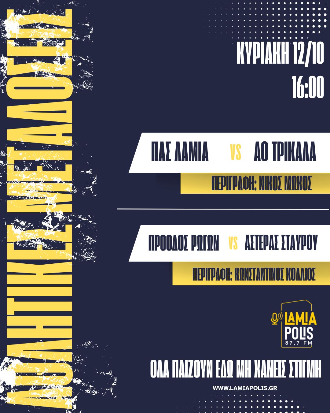 👉 Κυριακή 12/10 στις 16:00, συντονιστείτε στον LamiaPolis 87,7 ή διαδικτυακά μέσω www.lamiapolis.gr — γιατί το ποδόσφαιρο… παίζει εδώ! ⚽