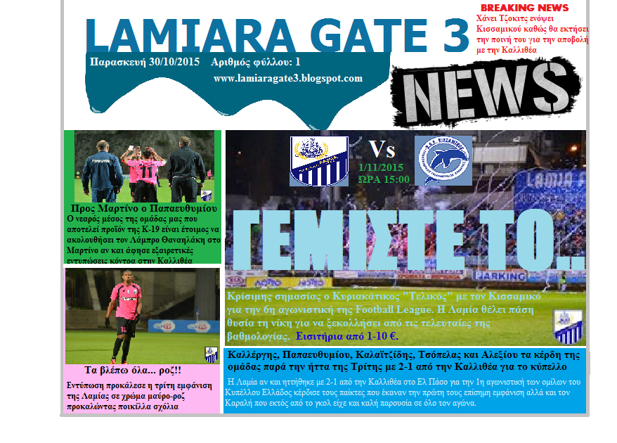 Το πρώτο πρωτοσέλιδο της εικονικής εφημερίδας Lamiaragate3 NEWS είναι γεγονός.