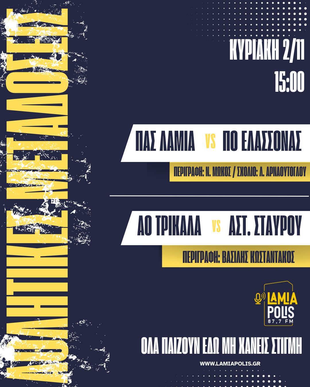 Ραδιοφωνική Μετάδοση: ΠΑΣ Λαμία – AE Λευκίμμης